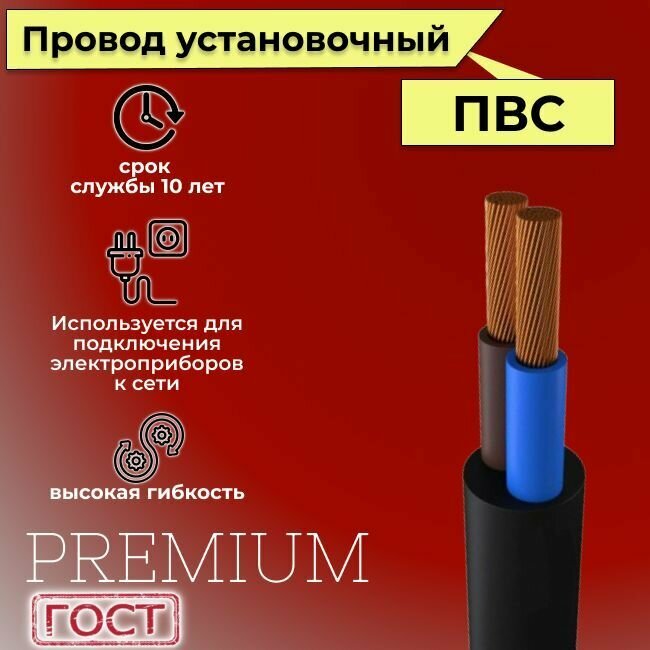 Провод/кабель гибкий электрический ПВС Premium 2х1,5 ГОСТ 7399-97, 10 м 917 ₽