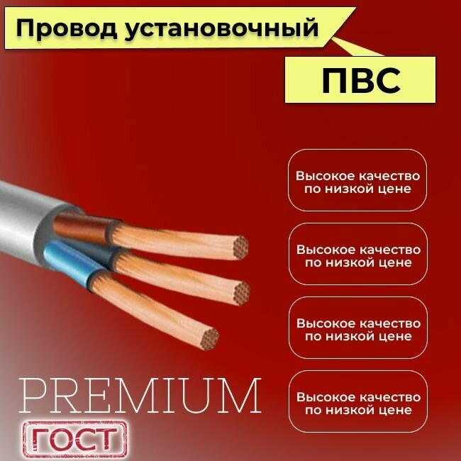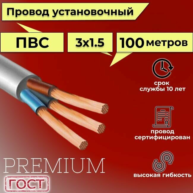 Провод/кабель гибкий электрический ПВС Premium 3х1,5 ГОСТ 7399-97, 100 м информация: