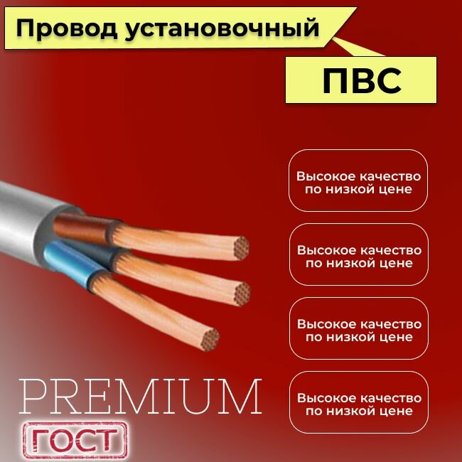 10 цен на Провод/кабель гибкий электрический ПВС Premium 3х1,5 ГОСТ 7399-97, 25 м