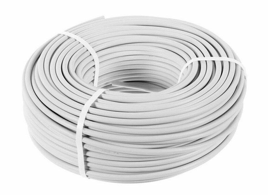 Кабель телефонный 4c, (CU, 4*7*0,10), 100м, плоский, белый для соединительных и абонентских сетей