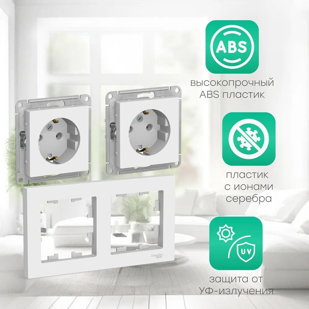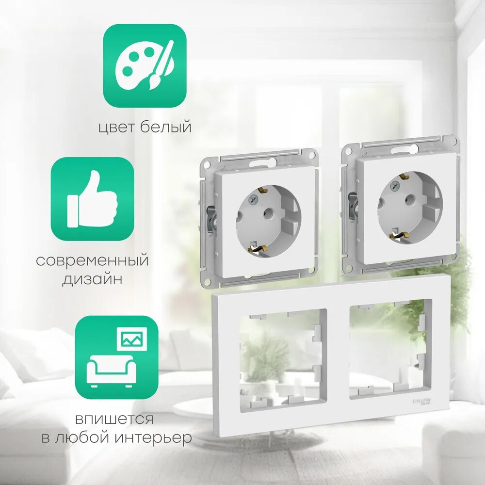 Systeme (Schneider) Electric ATLASDESIGN розетка с заземлением, 16А, механизм, белый ATN000143 комплект 2 шт + 2-постовая рамка, универсальная, белый ATN000102 информация: