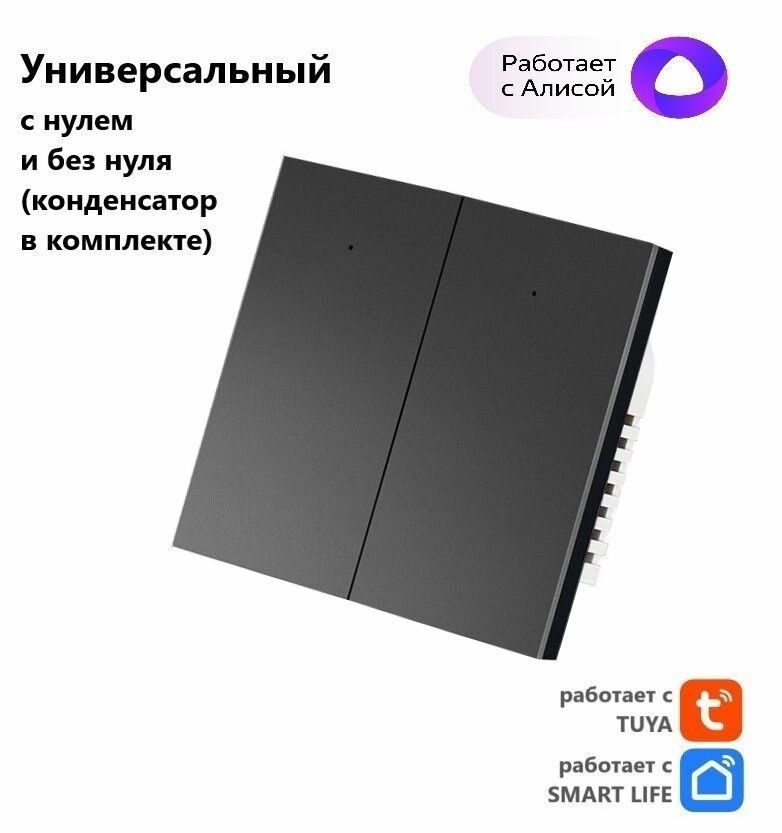 Отзывы на Умный выключатель Tuya с Алисой WI FI, Bluetooth с двумя клавишами черный матовый универсальный с конденсатором в комплекте