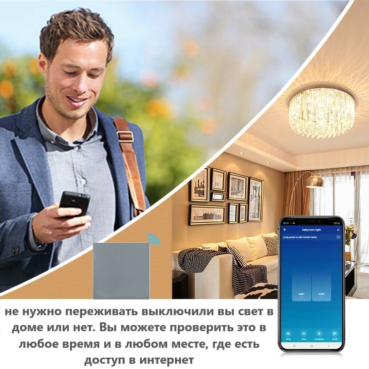 Отзывы на Умный выключатель Tuya с Алисой WI FI, Bluetooth с одной клавишей серый матовый универсальный с конденсатором в комплекте