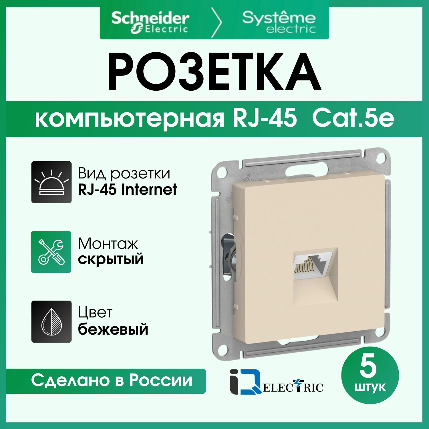 10 цен на Розетка RJ-45 кат. 5е, бежевая 5 шт Schneider Electric Atlas Design ATN000283