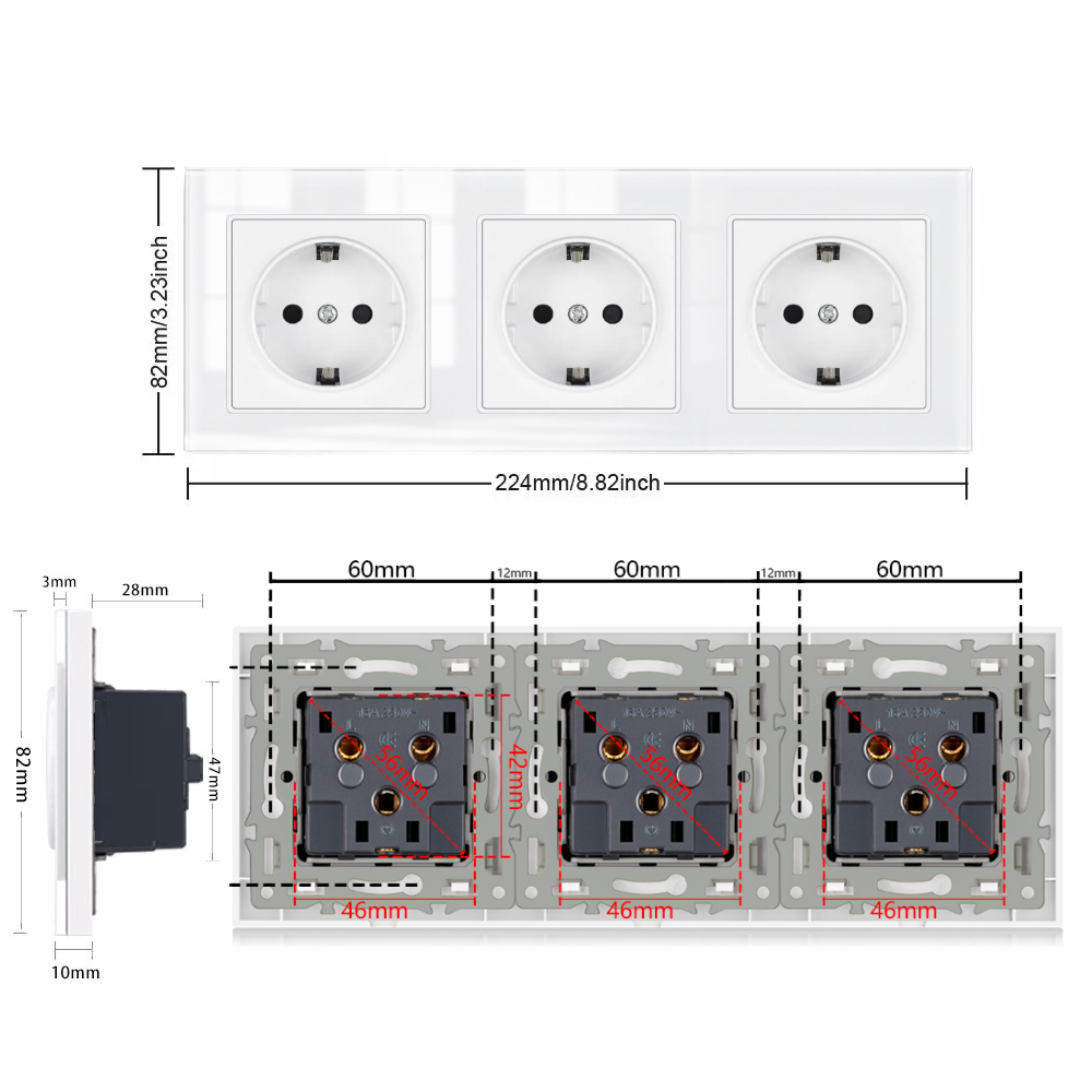 Отзывы на Розетка тройная 16А 250В, со шторками, рамка закаленное стекло, Белый