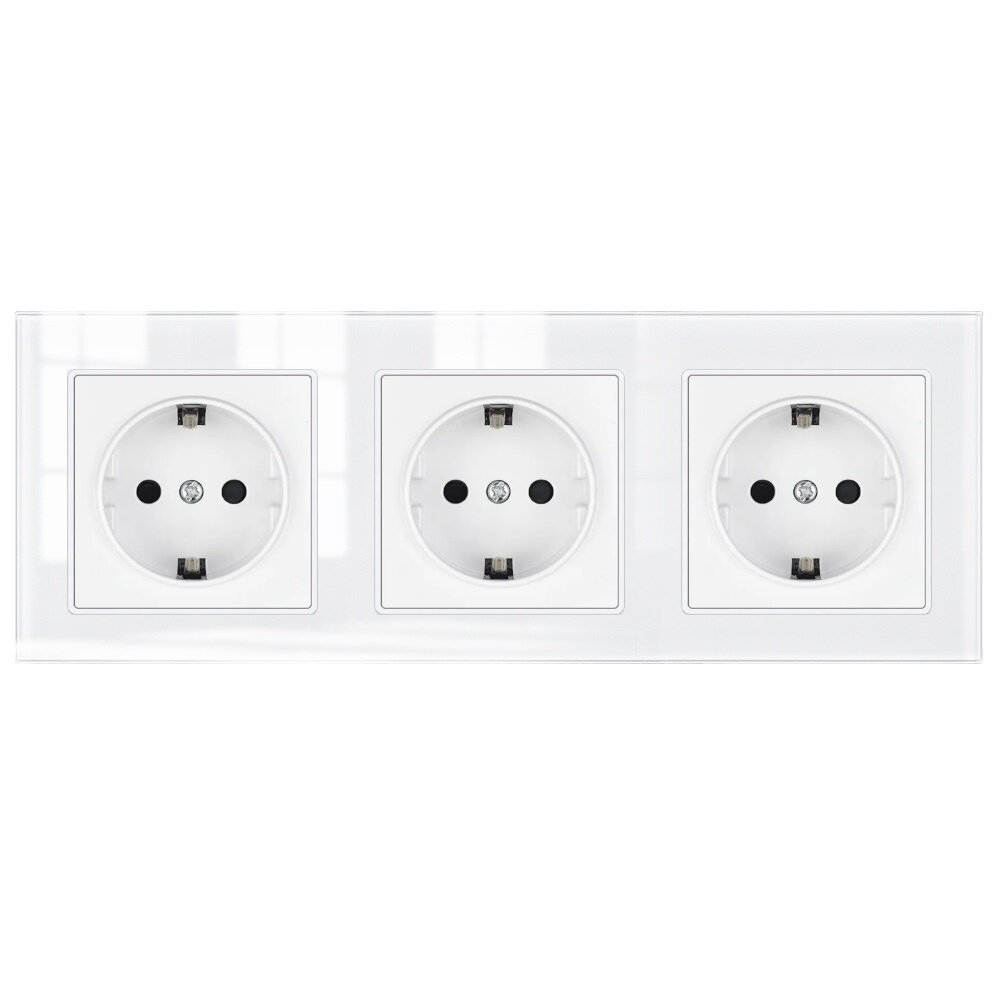 10 цен на Розетка тройная 16А 250В, со шторками, рамка закаленное стекло, Белый