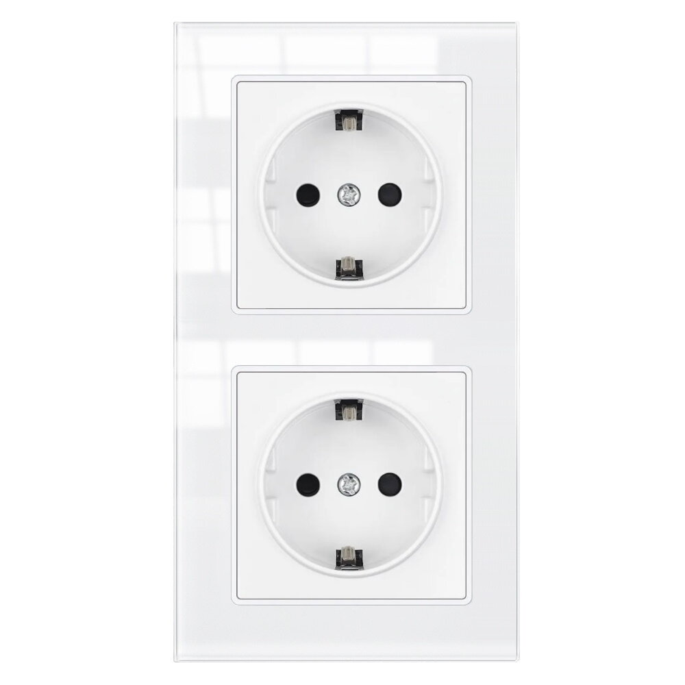 Отзывы на Розетка двойная 2 поста 16А 250В, со шторками, рамка закаленное стекло, Белый