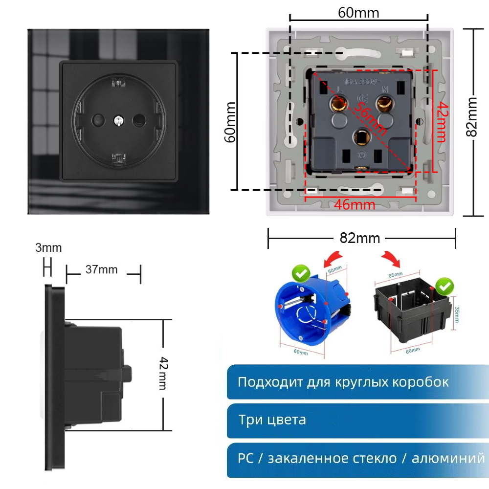 Отзывы на Розетка одинарная 220в 16А рамка из закаленного стекла, Чёрный