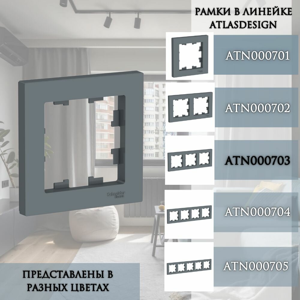 Рамка 3-постовая для розеток и выключателей Белый AtlasDesign (Атлас Дизайн) Schneider Electric ATN000103 1шт