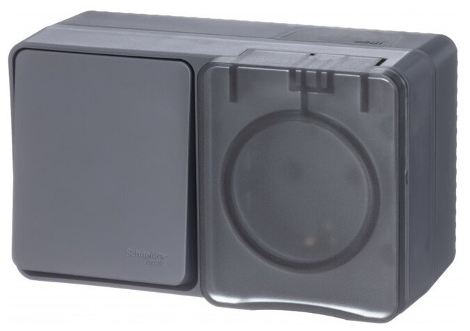 Блок Systeme Electric (schneider Electric) SCHNEIDER ELECTRIC AtlasDesign PROFI IP54 О/У Выключатель + Розетка з/к со шт. 16А 250B, 1-клав, 10А, Антрацит