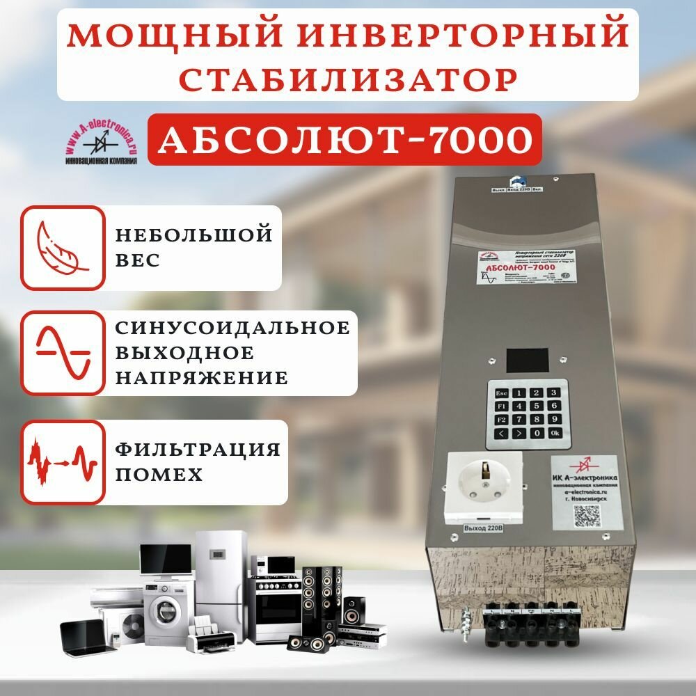 Отзывы на Стабилизатор, 7кВт, АБСОЛЮТ-7000, инверторный. Диапазон входного напряжения от 60 до 300В
