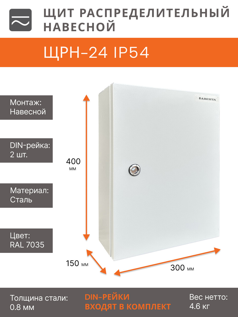 Щит распределительный навесной ЩРН-24 IP54 (400x300x150) металл информация: