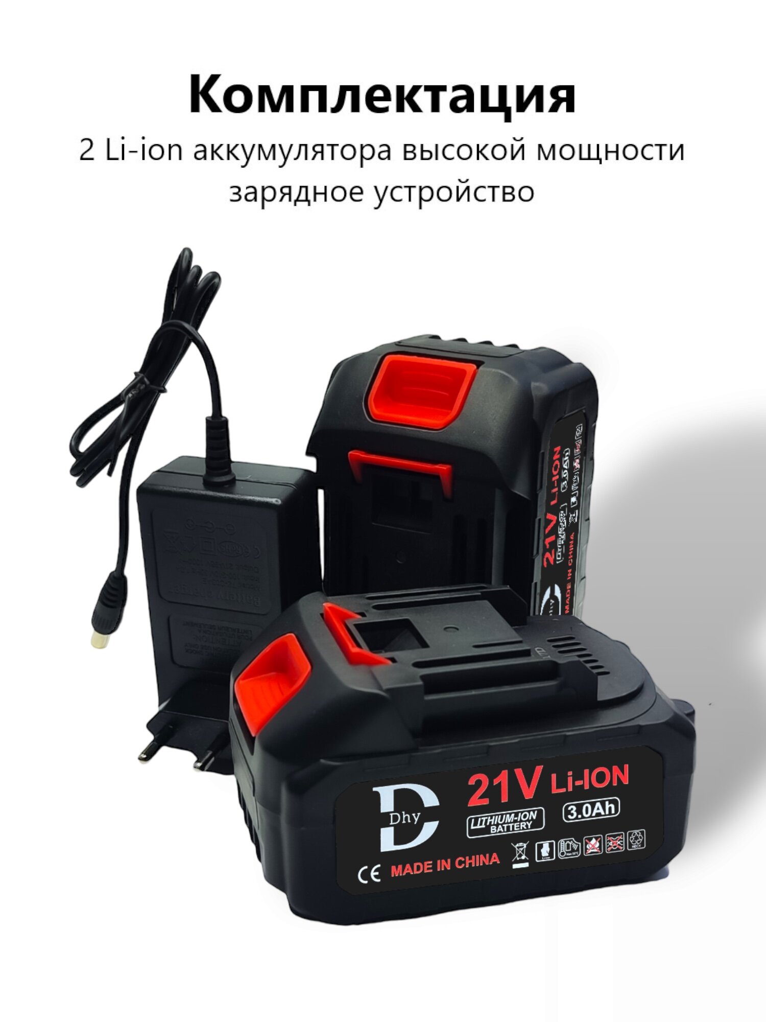 Аккумулятор DHY 3Ah - 2 шт + зарядка, универсальный для электроинструмента (электропила, ушм, шуруповерт, болгарка, гайковерт, триммер, воздуходувка, газонокосилка) информация: