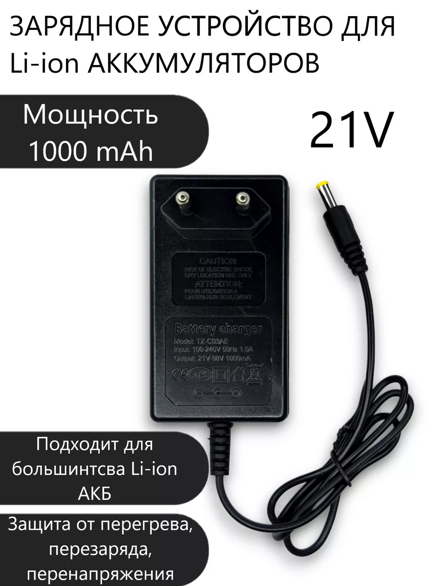 10 цен на Зарядка универсальная 21В 1А, размер штекера 5,5мм x 2,5мм, для аккумуляторов электроинструмента (электропила, ушм, шуруповерт, болгарка, гайковерт, триммер, воздуходувка, газонокосилка)
