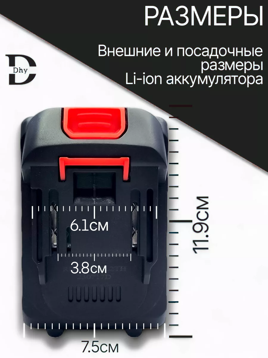 Аккумулятор DHY 2Ah - 1 шт, без ЗУ, универсальный для электроинструмента (электропила, ушм, шуруповерт, болгарка, гайковерт, триммер, воздуходувка, газонокосилка) информация: