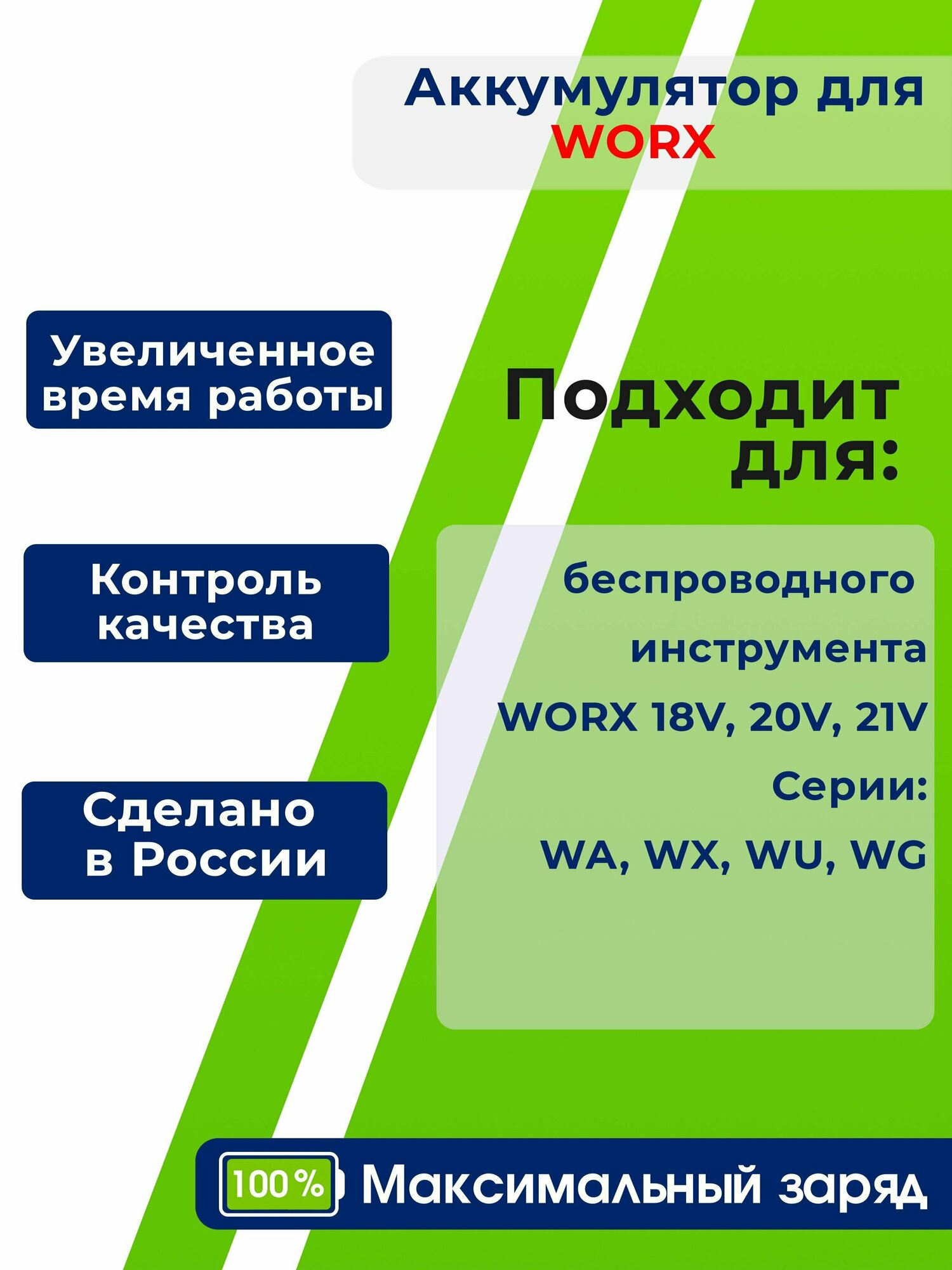 10 цен на Аккумулятор для WORX 18V -21V 5.2Ah высокотоковый