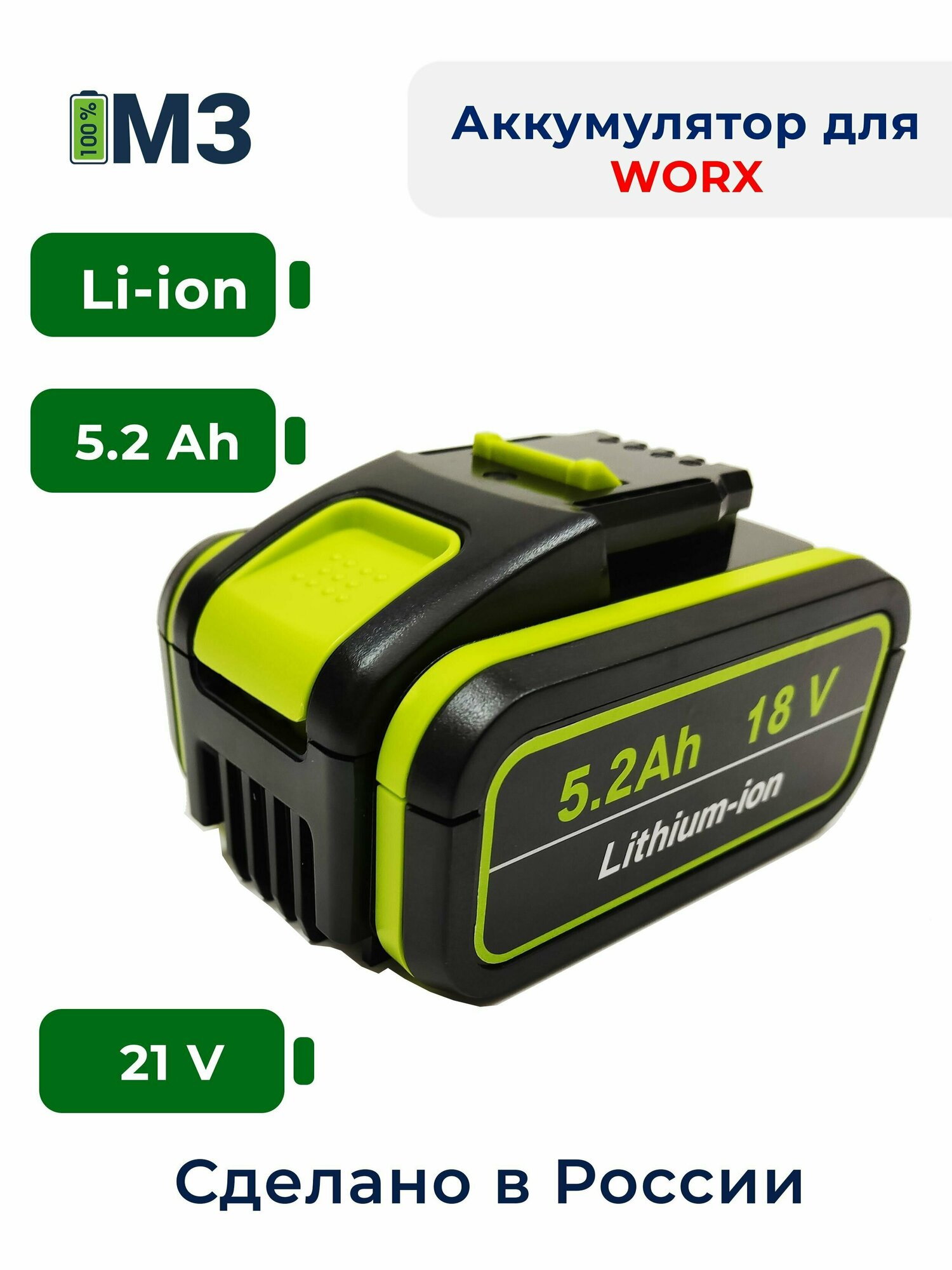 Аккумулятор для WORX 18V -21V 5.2Ah высокотоковый информация: