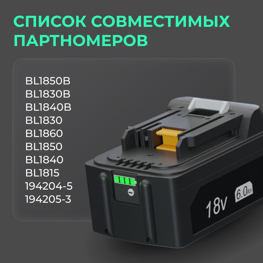 Аккумулятор для Makita 18V 6Ah BL1850B / BL1830B / BL1860B / BL1830 / BL1840B / BL1860 / BL1850 / 197599-5 / 197422-4 информация:
