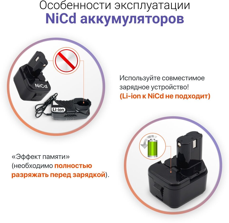 | Тип аккумулятора | Ni-Cd |