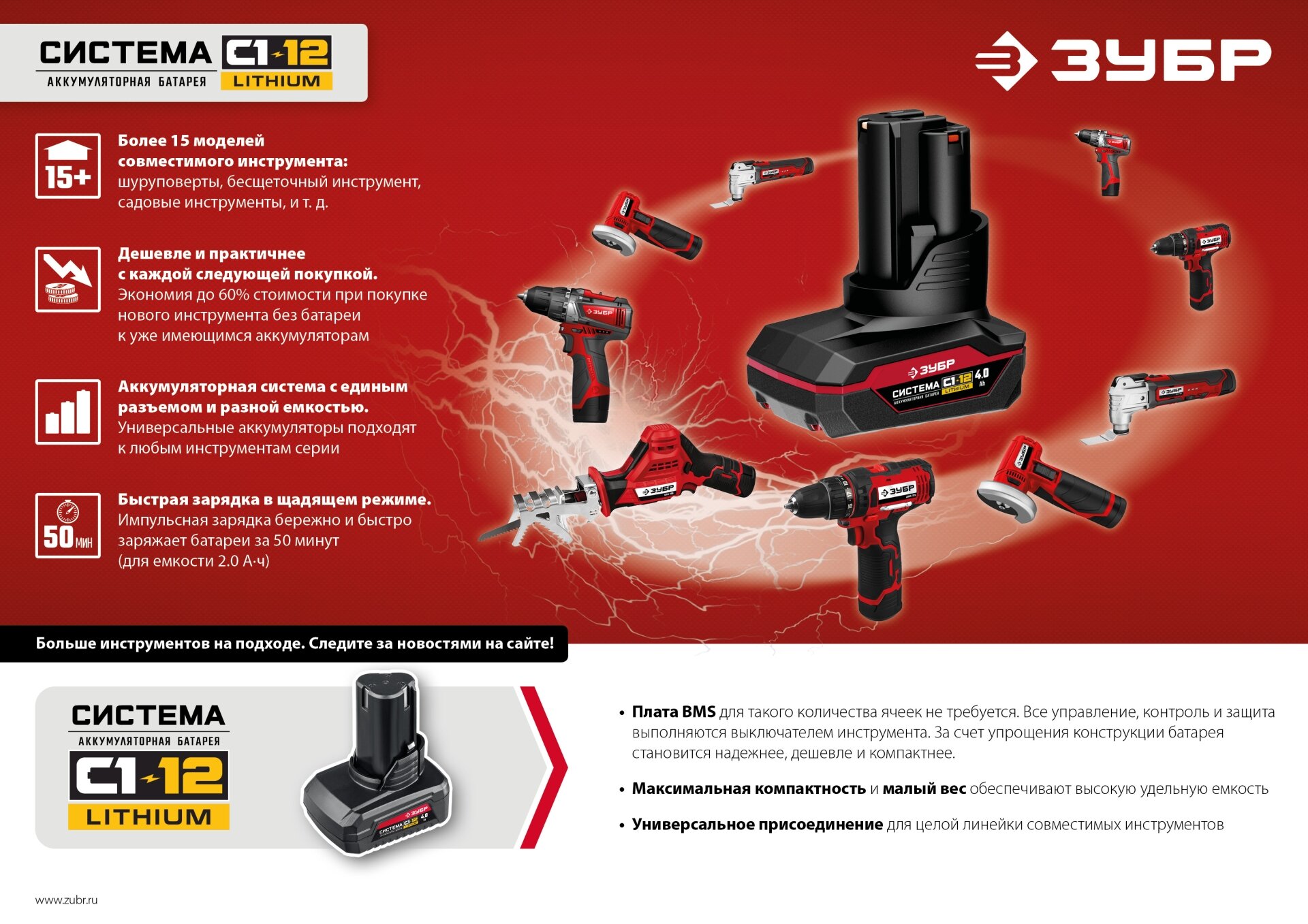 Аккумуляторная батарея Li-Ion, 12 В, 4 Ач Зубр АКБ-С1-12-4 информация: