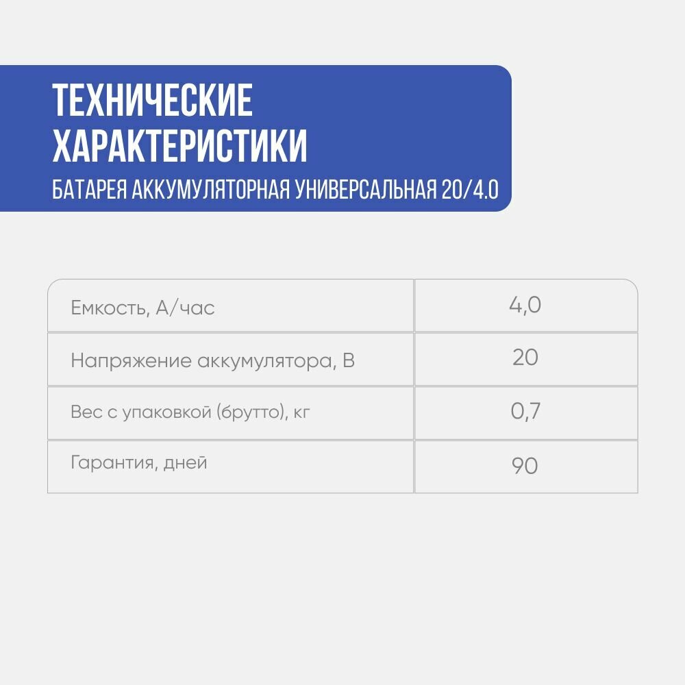 Батарея аккумуляторная универсальная (20 В; 4.0А/ч) серия ЛИ-02С диолд 90022016