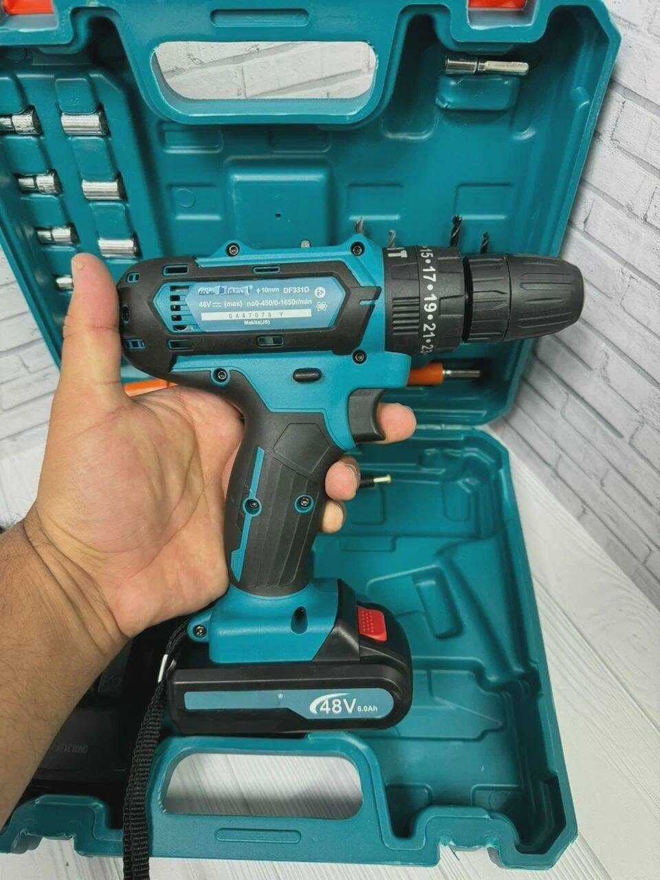 Отзывы на Шуруповерт аккумуляторный, строительный, дрель-шуруповерт с двумя аккумуляторами 48 V и набором инструментов в кейсе