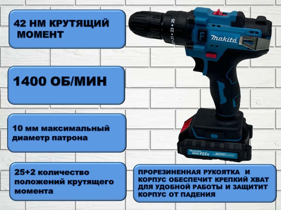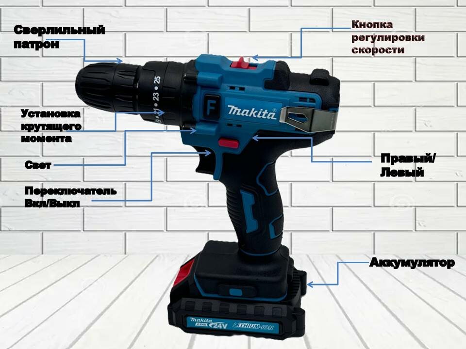Аккумуляторная дрель-шуруповерт, с кейсом и набором инструментов, 24 V информация: