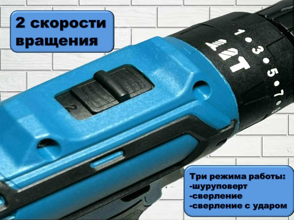 Шуруповерт с 2 аккумуляторами и комплектом инструментов в кейсе/биты + сверла в комплекте