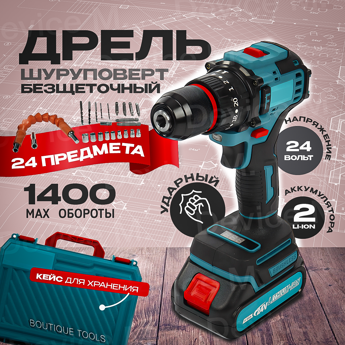 10 цен на Дрель - шуруповерт ударный аккумуляторный бесщеточный, 24В, 2 АКБ