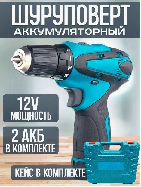 Дрель-шуруповерт Шуруповерт12V, От аккумулятора, 12 В, 25 Нм, 2 АКБ / гайковерт/в кейсе информация:
