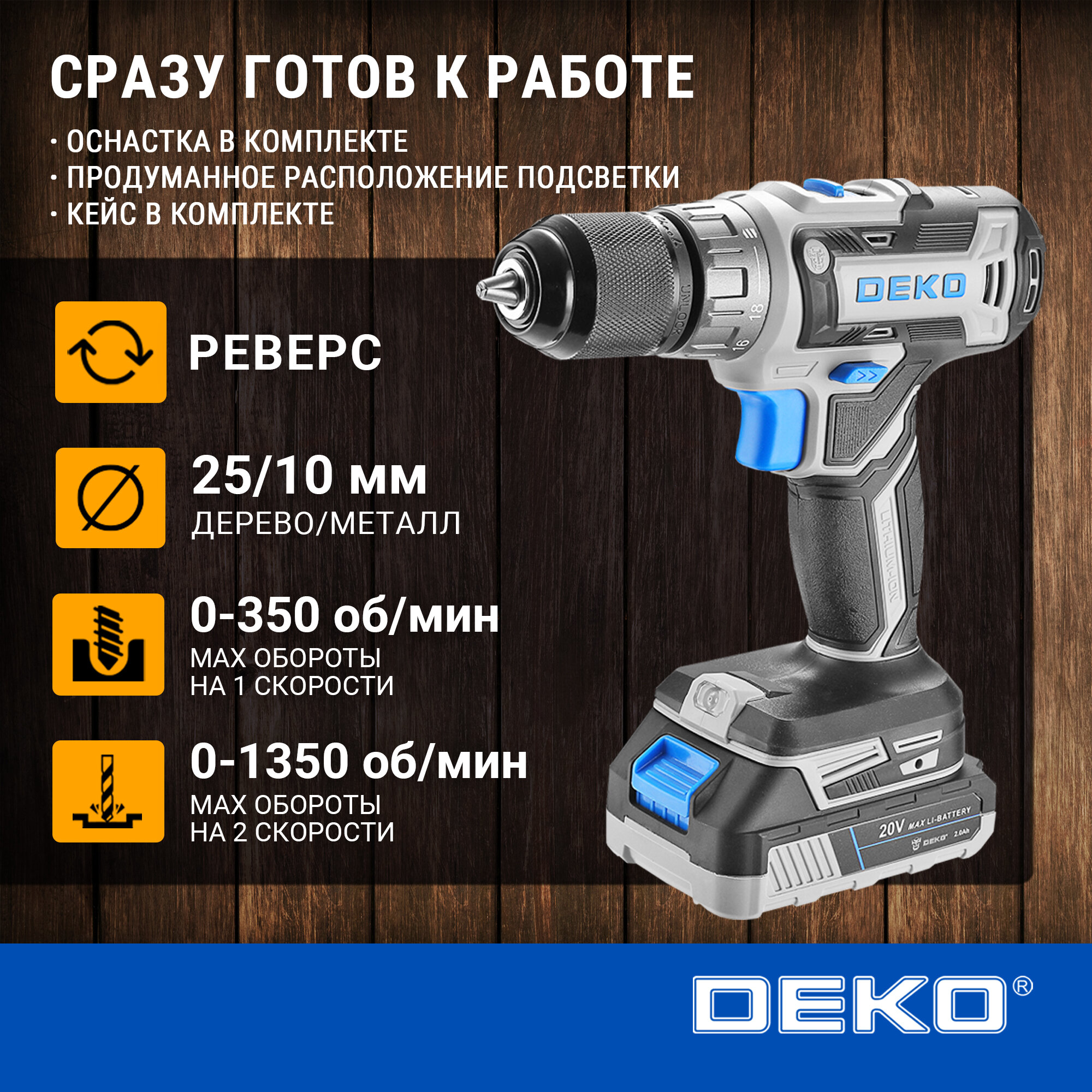 Аккумуляторная дрель-шуруповерт DEKO DKCD20FU-Li Li-Ion 2 А·ч 20 В х2 кейс