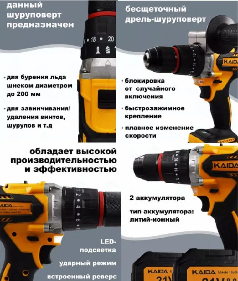 Шуруповерт, KAIDA От аккумулятора, 21 В, 120 Нм, 2 АКБ информация: