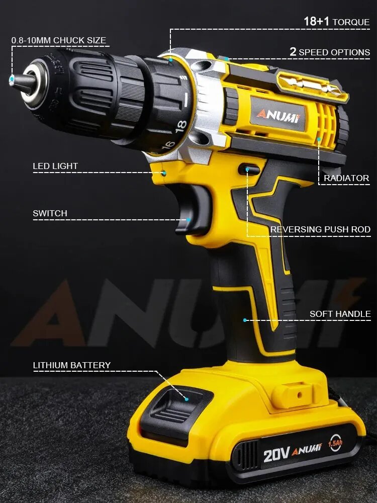 10 цен на ANUMI Аккумуляторная дрель шуруповерт 20В