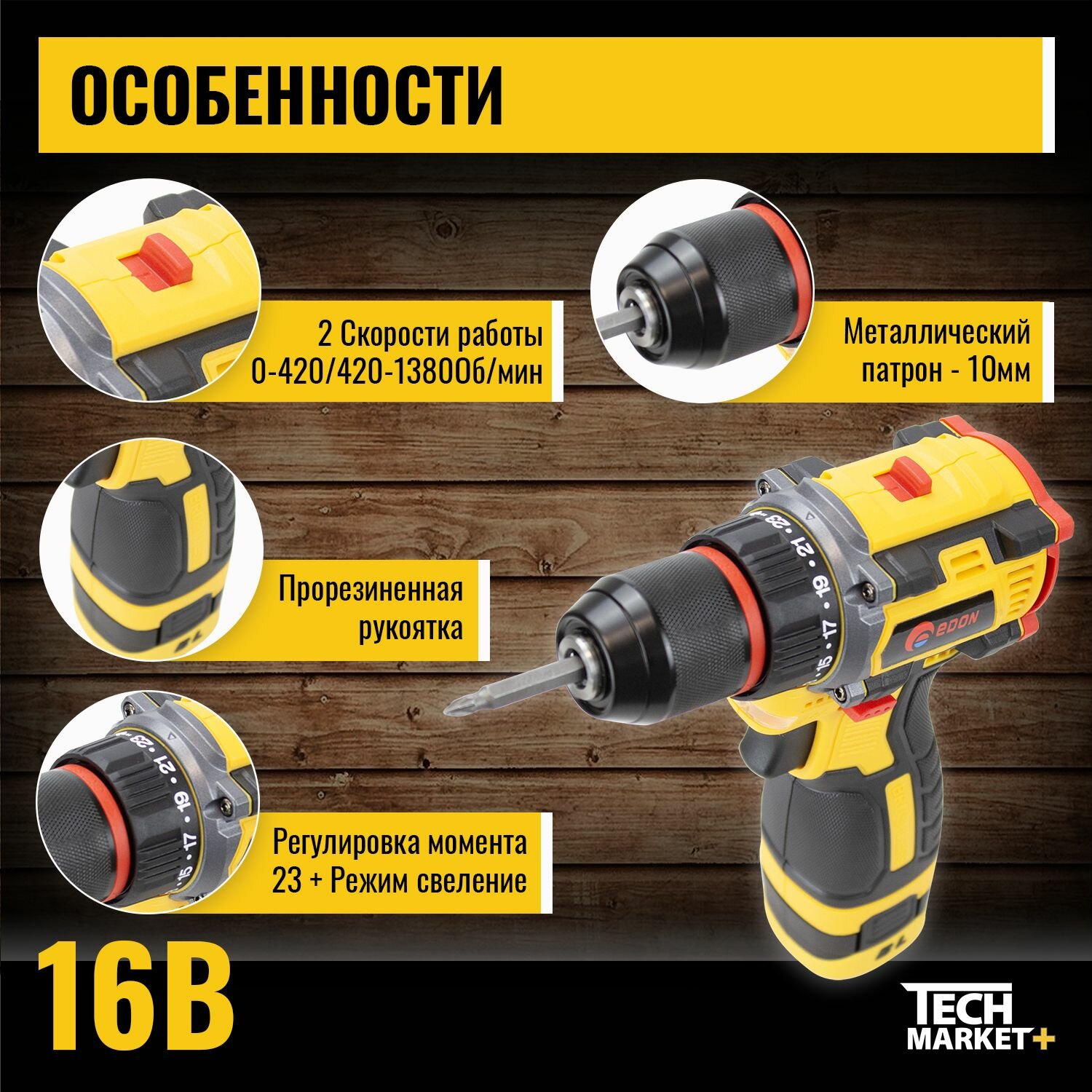 Дрель-шуруповерт аккумуляторная Edon AD-16BL (бесщеточный) информация: