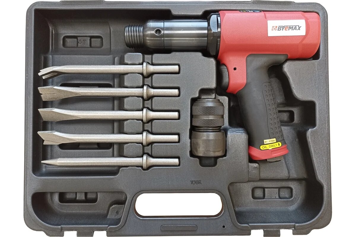 BYEMAX Мощное пневмозубило с виброзащитой и набором насадок в кейсе, 2 700 уд/мин, 2.5 кг BM-128RK информация: