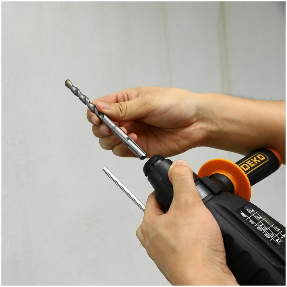 Перфоратор DEKO DKH1100W, 1100 Вт, 5300 уд/мин, 3.5 Дж, 5 буров SDS+ и дополнительный патрон