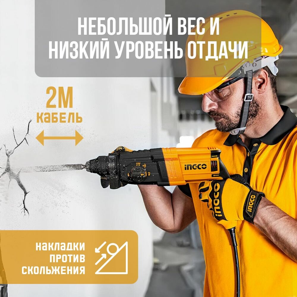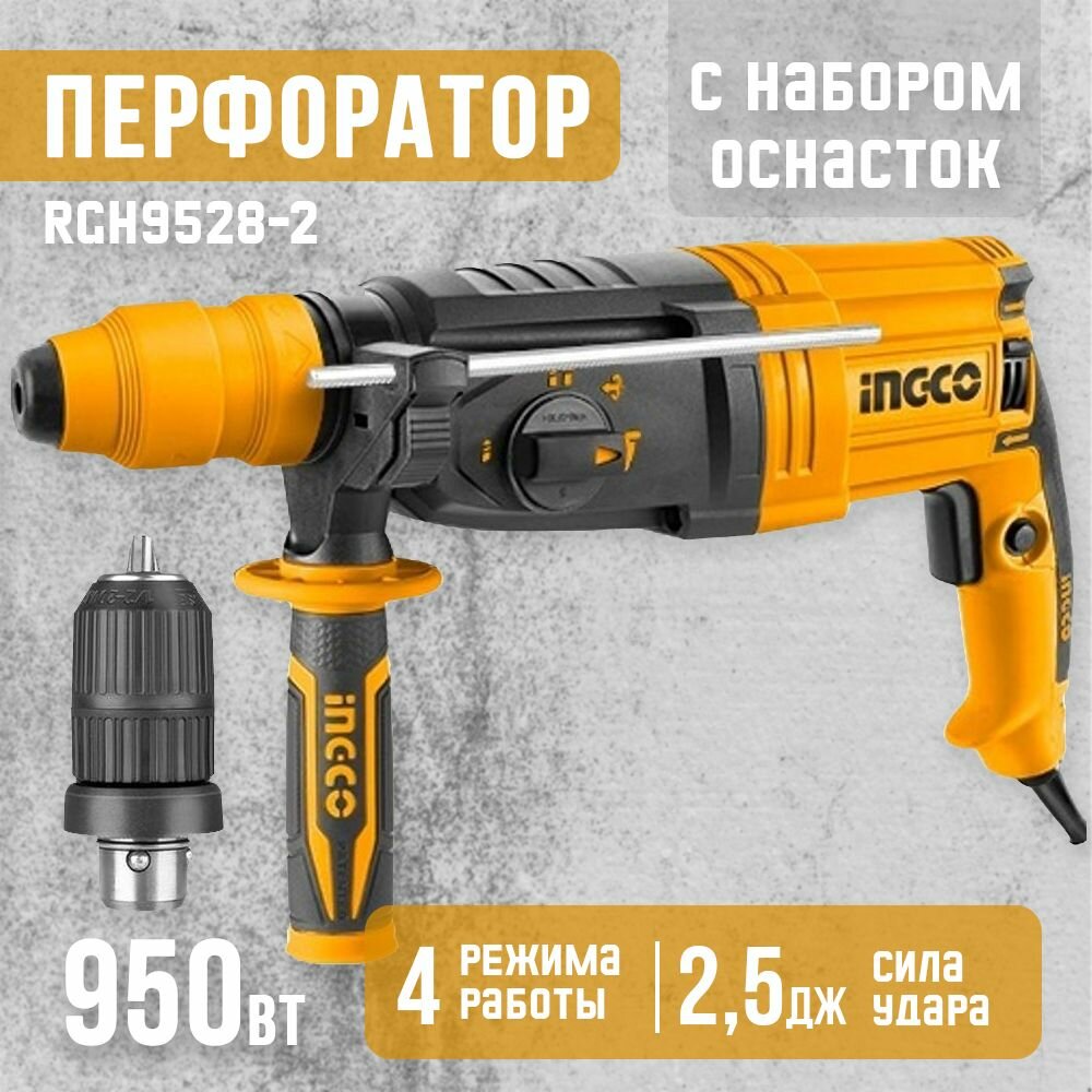 10 цен на Перфоратор 950 Вт, 0-1050 об./мин., дополнительный съёмный патрон, Ingco RGH9528-2