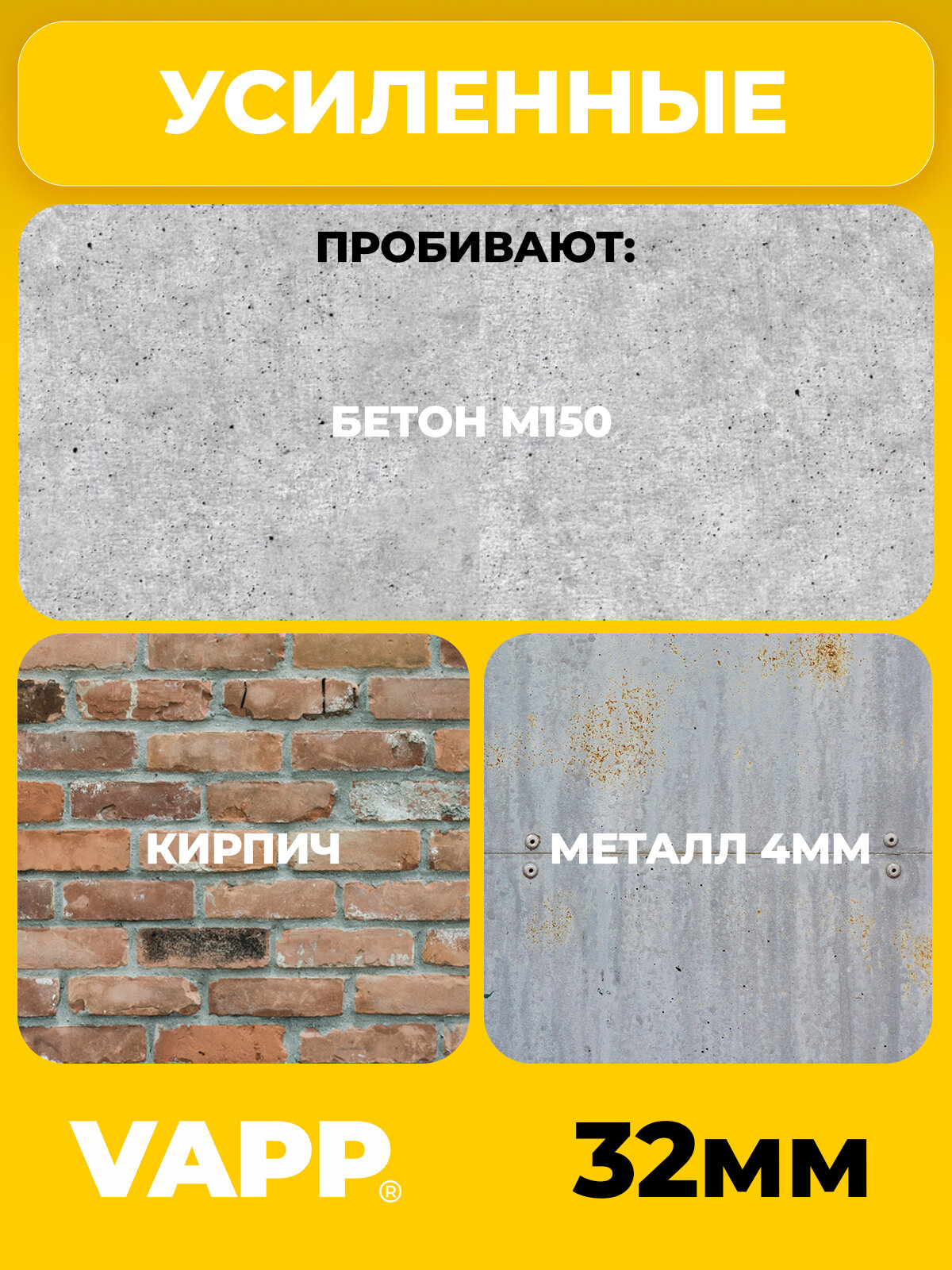Гвозди по бетону VAPP 3*32 мм усиленные для монтажного пистолета 1 140 ₽