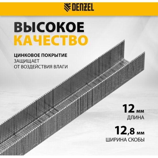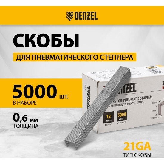 Скобы 21GA для пнев. степл, 12мм, шир. - 0,95мм, тол. - 0,6мм, шир. скобы - 12,8мм, 5000шт Denzel