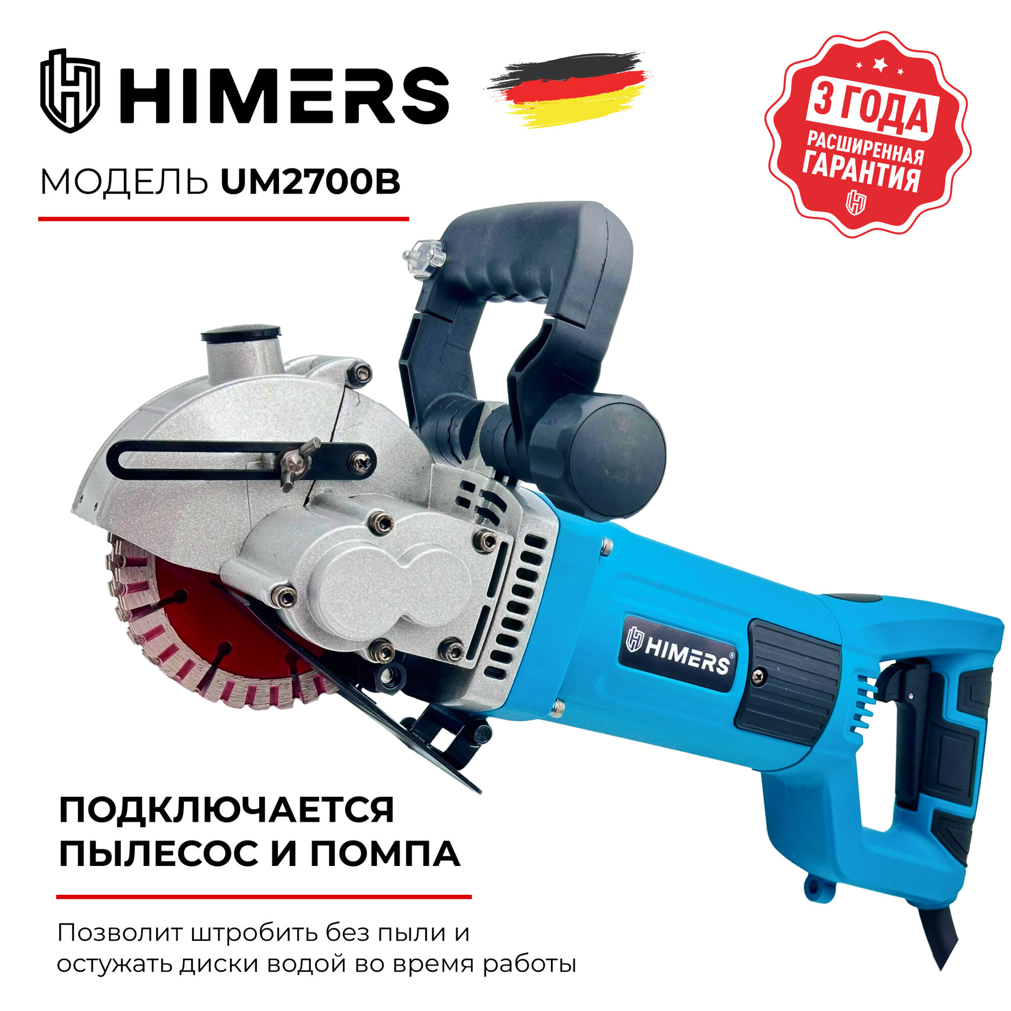 Отзывы на Штроборез HIMERS UM2700B., 2700Вт, 125-135мм , 8800 об/мин, Кейс, лазер, подключение пылесоса, водяное охлаждение