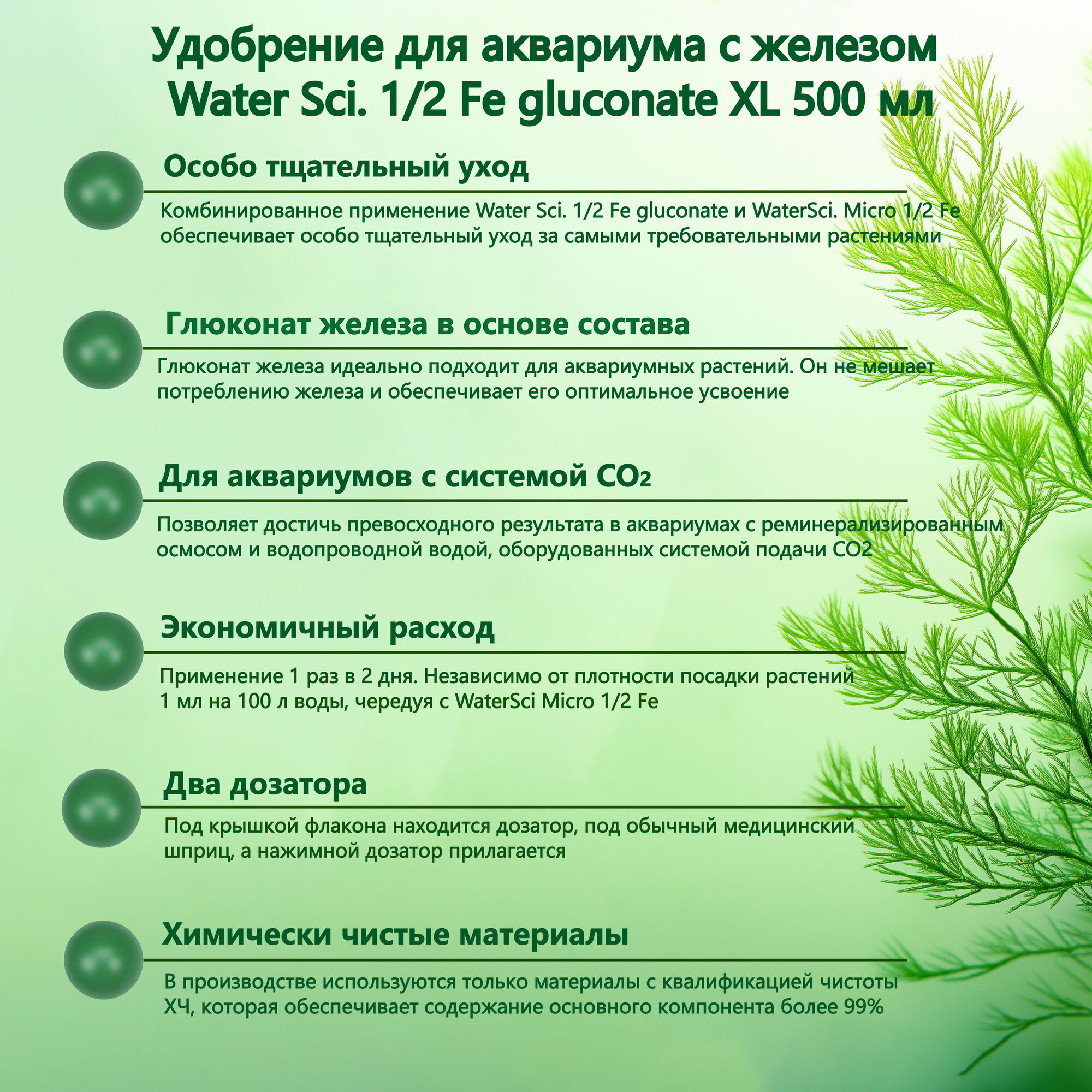 Удобрение с железом Water Sci. 1/2 Fe gluconate XL, 500 мл. информация: