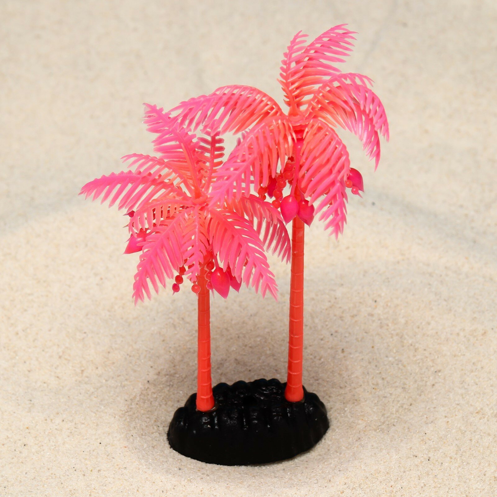 10 цен на Растение искусственное аквариумное "Пальма", светящееся, 18 см, красное