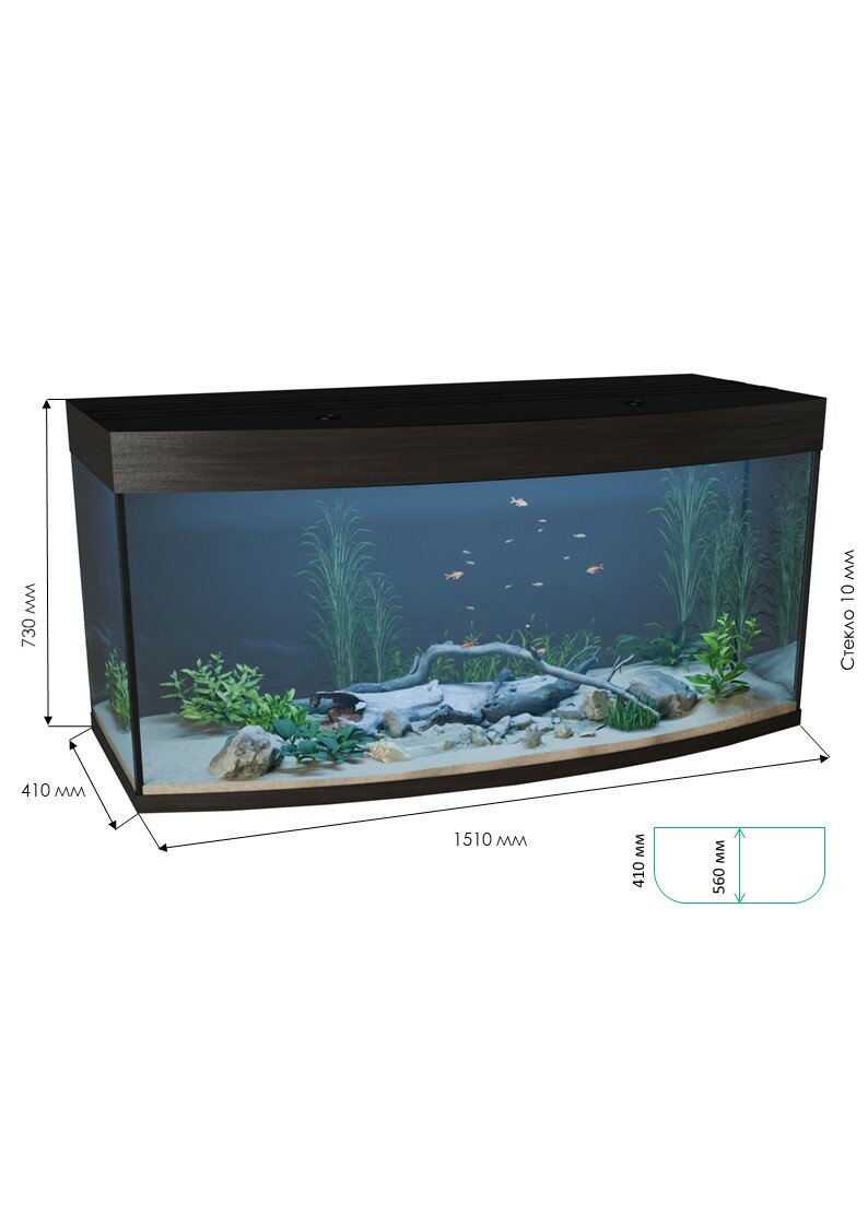 Аквариум 500 литров панорамный с крышкой и освещением информация: