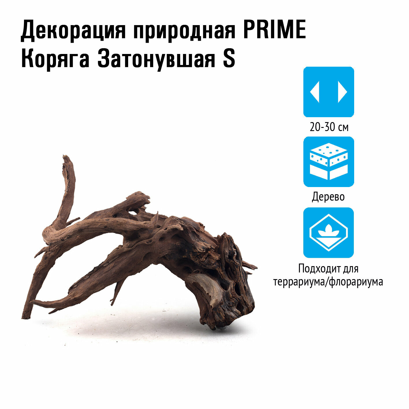 Декорация природная Prime Коряга затонувшая S, 20-30 см информация: