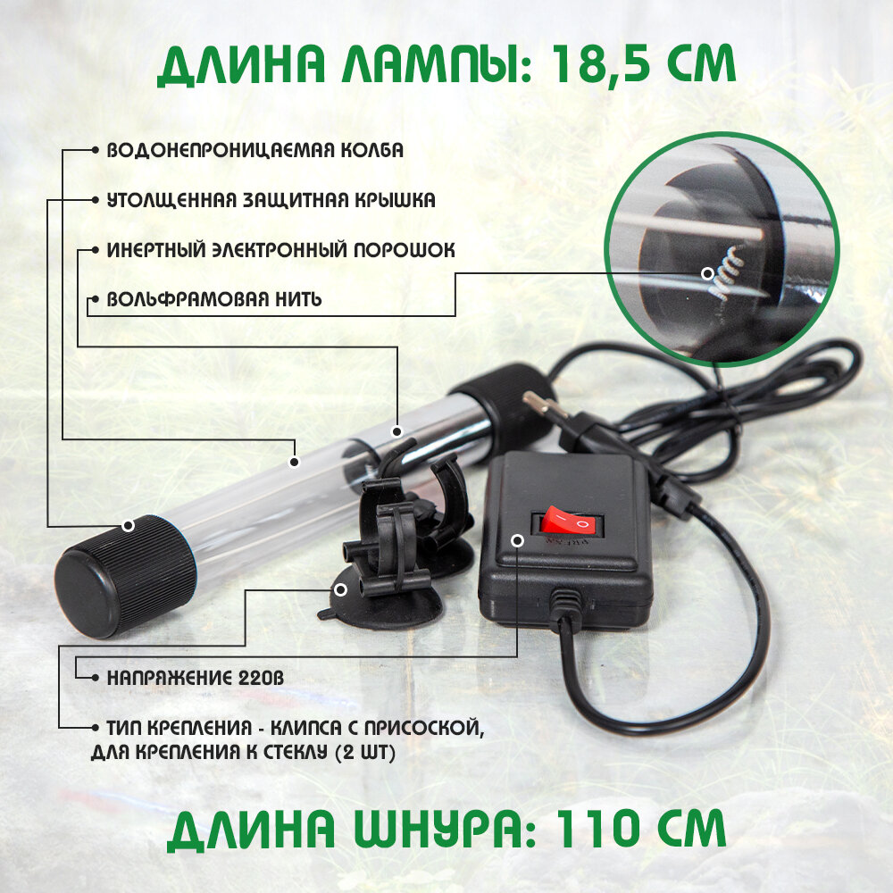 Отзывы на УФ стерилизатор для аквариума 5 Вт, бактерицидная лампа, для сампа, для чистки