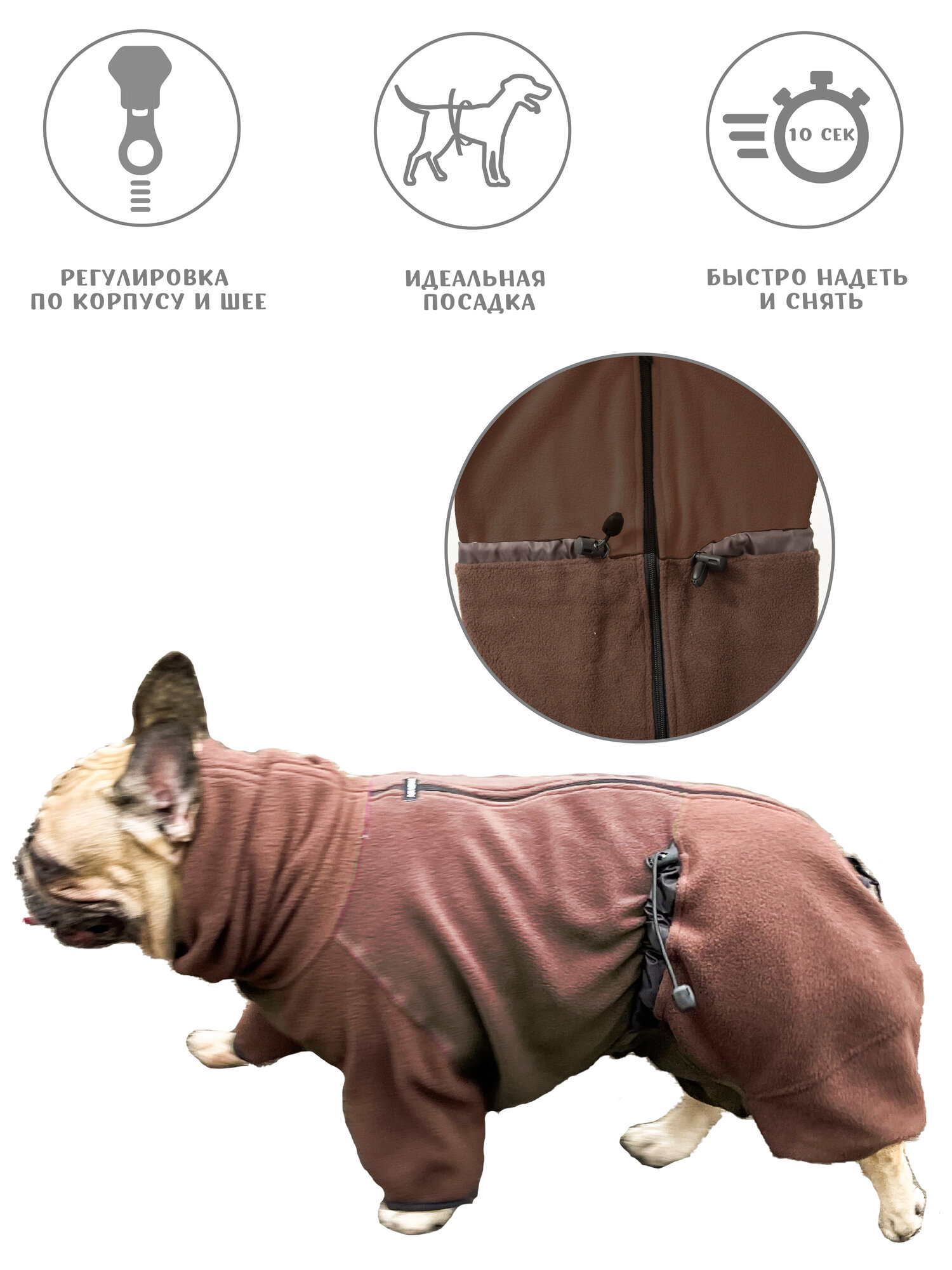 Флисовый комбинезон для собак породы французский бульдог, цвет коричневый , размер М информация: