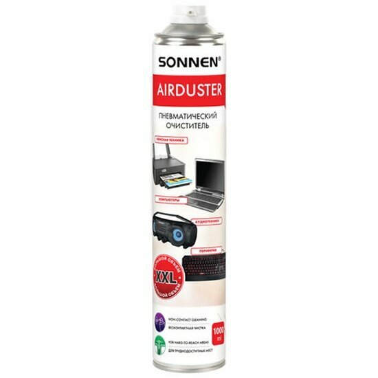 Отзывы на Пневматический очиститель, баллон со сжатым воздухом для чистки компьютера, ноутбука, оргтехники Sonnen 1000 мл, 513755