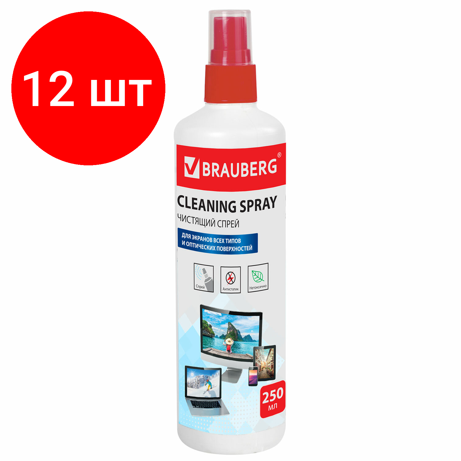 Отзывы на Комплект 12 шт, Чистящая жидкость-спрей BRAUBERG для LCD (ЖК)-мониторов, оптики и стекол, 250 мл, 510120