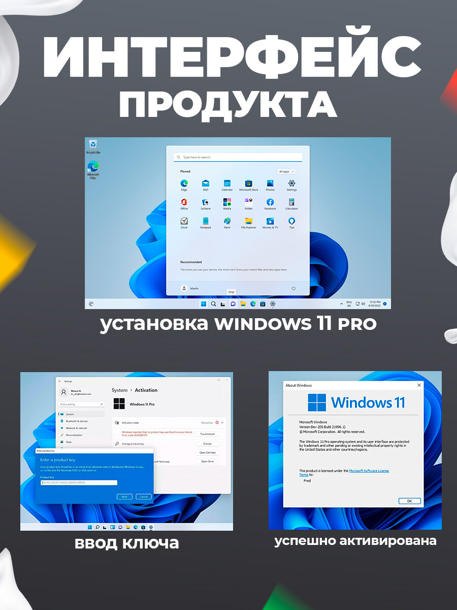 Ключ активации Windows 11 Pro ключ Microsoft (На 2 ПК, Русский язык, Бессрочная лицензия)