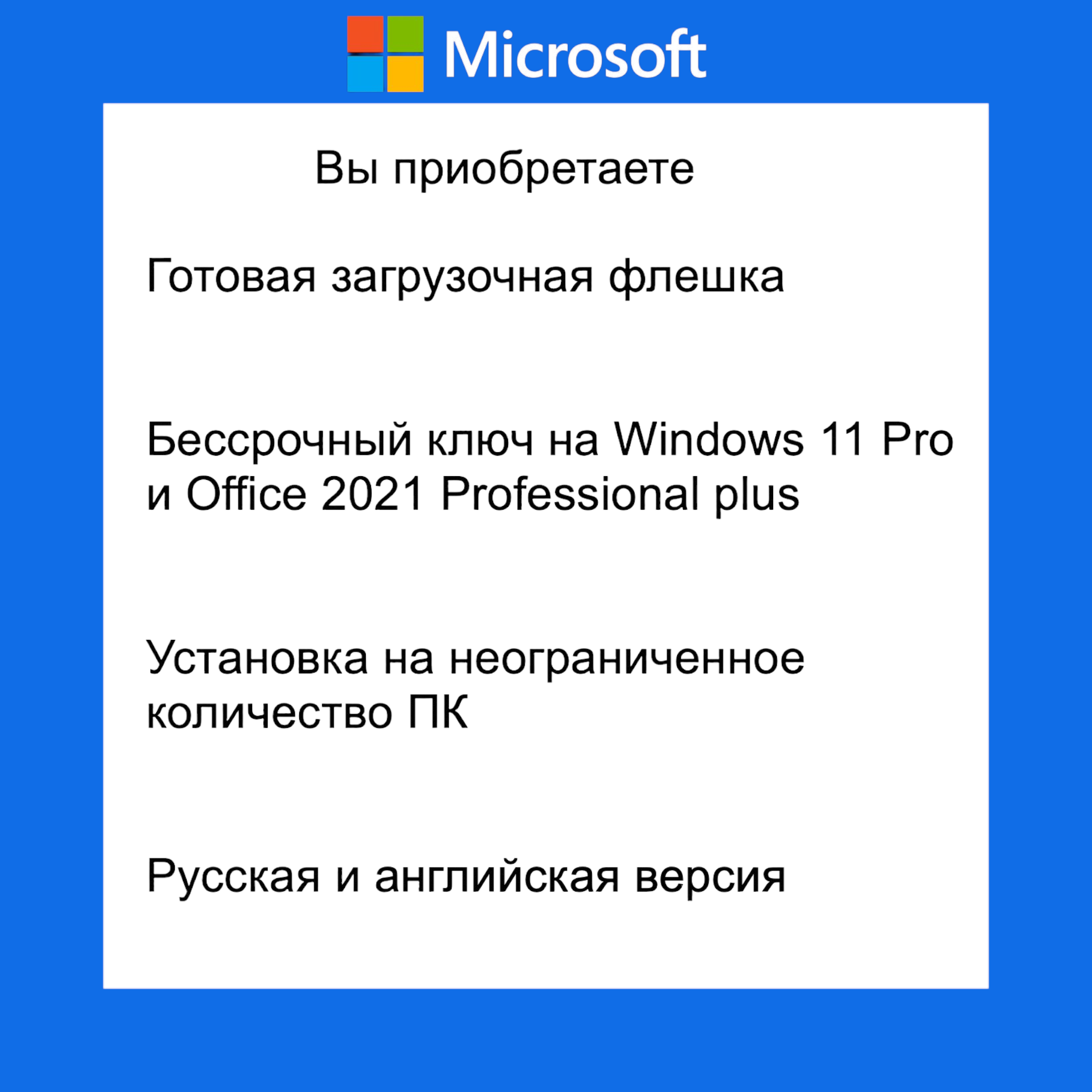 Microsoft установочный USB Windows 11 pro + Office неограниченное количество установок 1 ПК RU информация:
